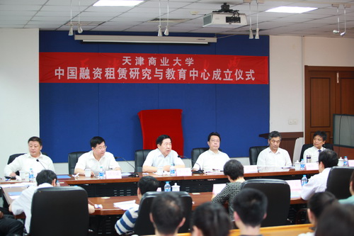 刘书瀚校长为成立仪式致辞。刘校长从学科建设、人才培养、科学研究等方面介绍了我校近年来的发展。同时就天津尤其是滨海新区金融业、融资租赁业发展现状进行了描述。滨海新区发挥先行先试的政策优势,积极推进金融改革创新,朝着建设国际金融、国际贸易、现代服务业聚集区和金融改革创新基地快速迈进。天津商业大学、中国国际商会租赁委员会、天津市租赁业协会合作成立了“天津商业大学中国融资租赁研究与教育中心”,是学校开放办学思想与创新办学方式,对接社会需求的又一个亮点。天津商业大学将与合作方竭诚合作,共同努力,将“天津商业大学中国融资租赁研究与教育中心”打造成为融资租赁的人才培养、科学研究、职业培训、服务咨询的基地。行业的发展、市场的壮大,取决于供给与需求的互动,我们将在这两个方面做出自己的不懈努力,为天津乃至全国融资租赁业的发展做出我们应有的贡献。
