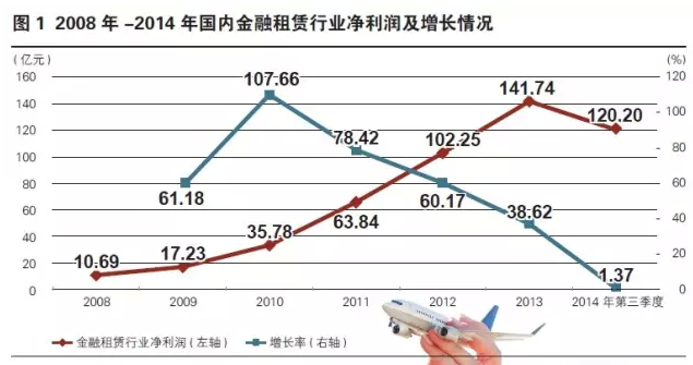 2014年以来,与整体融资租赁业一样,我国金融租赁行业明显进入发展的转折期,行业发展增速大幅下滑。前三季度,在新增5家金融租赁公司开业经营的情况下,全行业净利润同比仅增长1.37%,若不考虑新增机构因素,则全行业净利润同比下降1.96% ,详见图1所示。