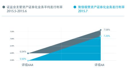 7月8日,第一创业聚信租赁一期资产支持专项计划在公开债券市场成功招标发行。最终优先A1档(AAA)中标利率为5.5%;优先A2档(评级AA)中标利率为7.2%。