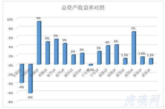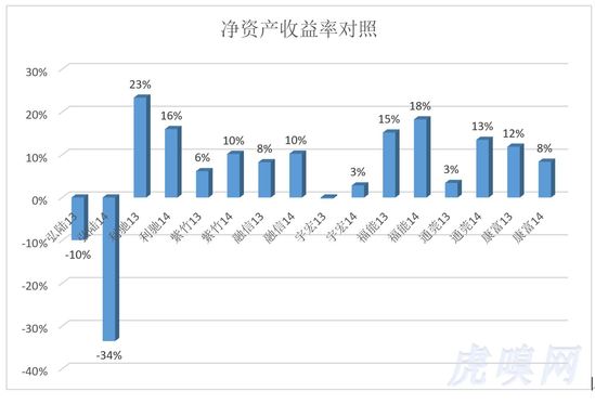 考查八家租赁公司的净资产收益率,利驰租赁、福能租赁分别达到16%和18%,资产运用效率尚可。宇宏、弘陆都不高。财务杠杆最高的中国康富,2014财的的净资收益率只有8%。