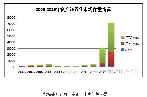 自2014年起,资产证券化市场呈现爆发式增长,这两年共发行各类产品逾9000亿元,是前9年发行总量的6倍多,市场规模较2013年末增长了15倍。从产品结构看,信贷ABS始终占较大比重,值得注意的是,2015年交易所证券化产品发行增速较快,规模明显扩大。