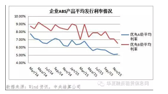 二是民营融资租赁企业首次尝试ABS项目。3月30日,融信租赁股份有限公司发布公告称,“融信一期”资产支持专项计划成功募资2.07亿元。融资租赁企业的资金大多来自银行,资金成本较高,资产证券化为其提供了新的融资方式。“融信一期” ABS产品不仅是中国首单民营融资租赁ABS项目,也是新三板挂牌公司ABS项目的首次尝试。