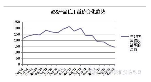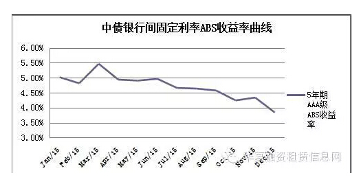 2015年,国内经济延续平缓的增长态势,债券市场收益率整体下行,在此背景下,中债ABS收益率曲线呈震荡下行走势,以5年期AAA级固定利率ABS收益率曲线为例,全年收益率下行118个bp。