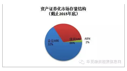 2015年,全国共发行1386只资产证券化产品,总金额5930.39亿元,同比增长79%,市场存量为7178.89亿元,同比增长128%。其中,信贷ABS发行388单,发行额4056.33亿元,同比增长44%,占发行总量的68%;存量为4719.67亿元,同比增加88%,占市场总量的66%。企业资产支持专项计划(以下简称“企业ABS”)发行989单,发行额1802.3亿元,同比增长359%,占比31%;存量2300.32亿元,同比增长394%,占比32%;资产支持票据(以下简称“ABN”)发行9单,发行额35亿元,同比减少61%,占比1%;存量158.9亿元,同比减少5%,占比2%。