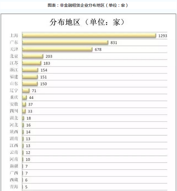 经和信已统计出的3970家非金融企业中,分布地区普遍在上海、广东、天津、北京等地区,上海地区的融资租赁公司占了整个非金融系公司数量的三分之一左右。