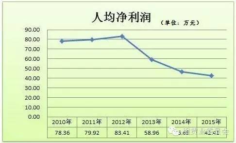 从上图可以看出,人均净利润在2012年之前呈稳步上升趋势,在2012年之后呈逐步下降趋势。