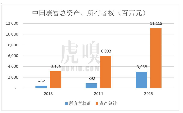 新股东入主后,中国康富总资产急剧膨胀,从2013年的31.56亿猛增到2015年的111.13亿。晥江金租2015年总资产同比增幅为46.8%,中国康富达85.1%。