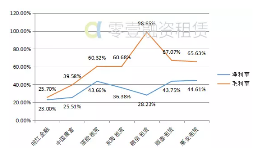 融资租赁公司毛利率最高达98.65%,净利率最高达44.61%