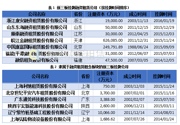 已挂牌新三板融资租赁公司达7家