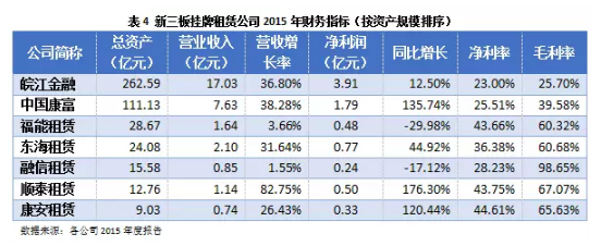目前挂牌新三板的融资租赁公司已有7家,这7家公司总资产规模超过450亿元,毛利率最高达98.65%,净利率最高达44.61%。