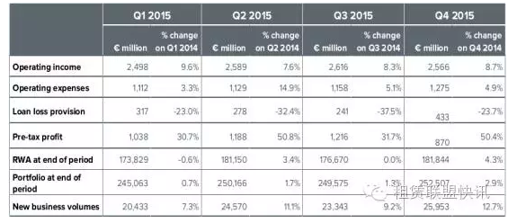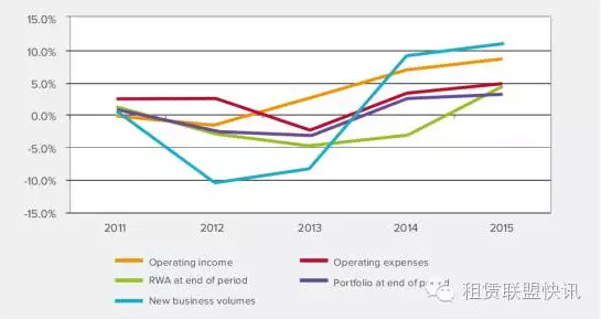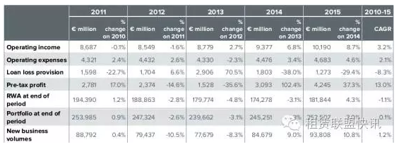年度数据显示,2015年所有指标与2014年相比都有提高,这表明,在多年低迷之后,行业整体趋势向好。(应该注意到,下表2013年与2014年的比较中,税前利润和风险准备金存在例外,因为2013年第三季度样本中大额风险准备金被独立出来)。