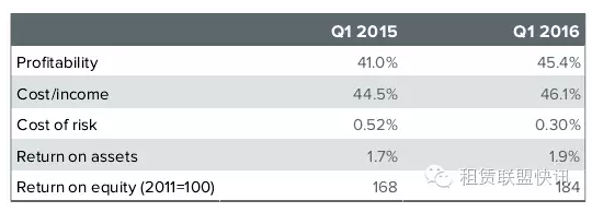 欧洲租赁指标显示2016年第一季度关键指标仍然强劲。