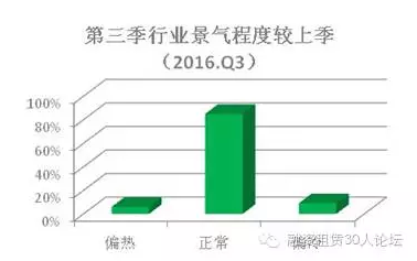 其中,有82%参与调查者认为下一个季度行业发展景气程度将“持平”;9%参与调查者认为下一个季度行业发展将“更差”;同时有9%的参与调查高管认为下一个季度行业发展将“更好”。