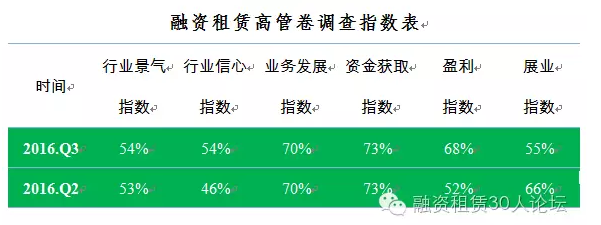 2016年10月,中国融资租赁三十人论坛开展的全国融资租赁行业高管问卷调查结果显示: