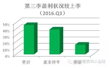 2016年第三季度,融资租赁行业盈利指数为68%,这个数字较上季度上升16个百分点,显示本季度融资租赁公司盈利状况 “明显转好”。