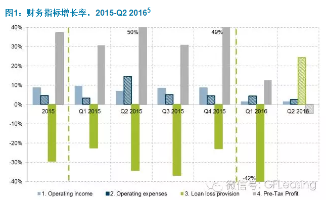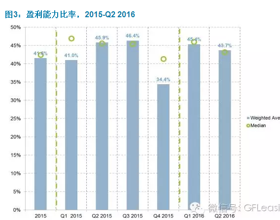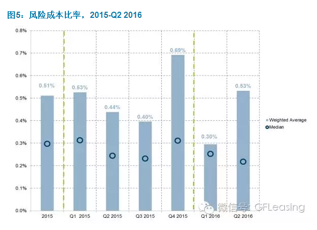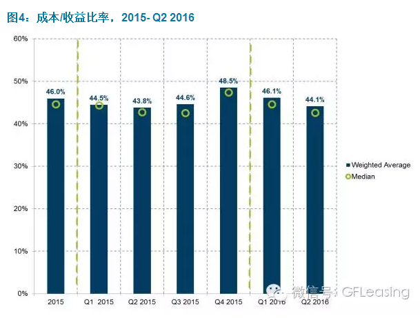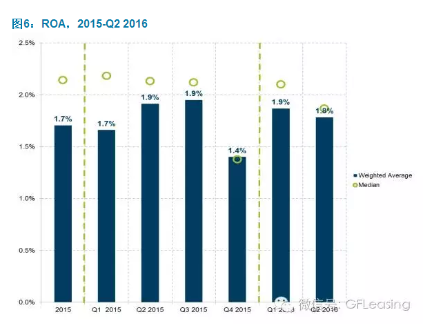 4欧洲租赁协会是基于参与公司所提供的数据计算的加权平均比率。盈利能力和成本收益是由相关时期的新业务量加权。例如,每个公司单独的盈利能力比率是由它在2016年第二季度期间的新业务量加权,从而达到表中显示的加权平均比率43.7%。风险成本,ROA和ROE比率是由相关时期的平均资产组合加权的。