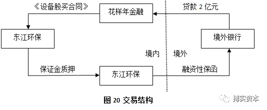 2)交易要点:东江环保以提供保证金方式向招行景田支行申请开立以某境外银行为受益人,融资租赁公司花样年金融为被担保人的融资性保函,该境外银行收到保函后,向花样年金融提供跨境贷款,花样年金融再以融资租赁形式将该笔贷款投放给东江环保。