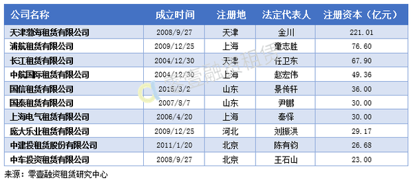 注册资本排名前十的内资租赁公司