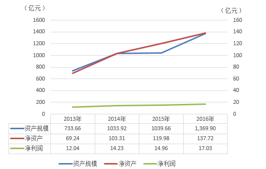 从资产规模来看,招银租赁2016年末总资产为1,369.90亿元,较年初增长19.24%[1];净资产137.72亿元,较年初增长13.91%。