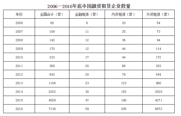 据中国租赁联盟和天津滨海融资租赁研究院测算,2016年底,中国融资租赁企业总数是2006年底的89.2倍。