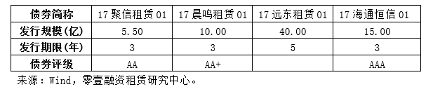 2017上半年租赁公司一共发行四只公司债,发行总额为70.5亿元。具体发行情况如下: