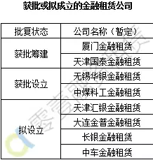 此外,还有2家金融租赁公司获批筹建,2家金融租赁公司获批设立,4家金融租赁公司拟设立。