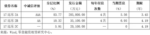 远东国际租赁有限公司于8月16日公告发行了其2017年第二期总额34.02亿元的ABS。本期ABS优先A级发行金额28.50亿元,分层占比83.77%;优先B级发行金额3.51亿元,分层占比10.32%;次级2.01亿元,分层占比5.91%。