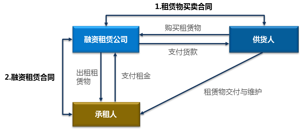 融资租赁的交易结构涉及到“一个标的物”,即租赁物;“两个合同”,即《买卖合同》和《融资租赁合同》;“三方当事人”,即出租方、承租方。供货方。售后回租业务中,承租方和供货方为同一方。融资租赁与银行信贷的根本区别在于融资租赁交易结构中必须有明确、合法、合规的标的物件,对标的物管理与处置能力亦是融资租赁公司的核心竞争力之一。