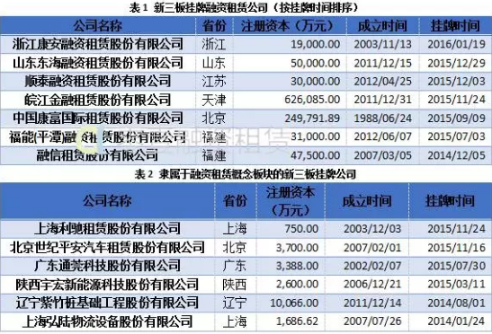 融信租赁股份有限公司于2014年12月5日在新三板挂牌,成为中国融资租赁行业第一家挂牌新三板的企业。