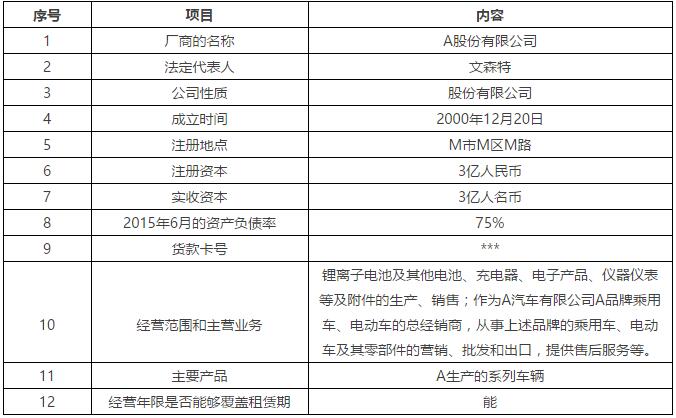 截止2014年12月。A的总资产约为10亿元。A近几年资产实力不断扩大,同时其行业地位也不断提升。作为国家重点新能源汽车生产企业,产品市场认可度较高,具备较强的品牌效应,具有一定的资产规模和抗风险能力。