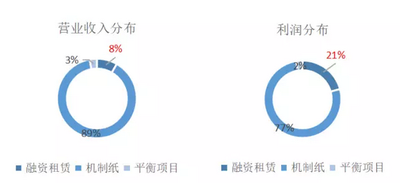 晨鸣纸业持续对于融资租赁的布局,还要归因于融资租赁业务对于其整个利润的贡献。据2017半年报显示,上半年融资租赁业务收入为11.28亿元,同比增长29.63%,虽仅占主营业务收入的8%,但却是集团21%的利润来源,毛利率高达82%,远远超过机制纸传统业务。融资租赁业务成为晨鸣纸业利润增长的主要来源和新的利润增长点。
