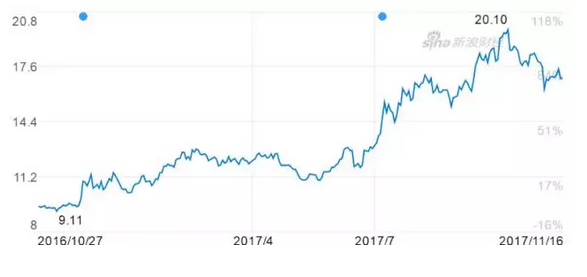 而2016年10月以来,晨鸣纸业的股价从9元,近期达到20元的高位,实现翻倍增长。