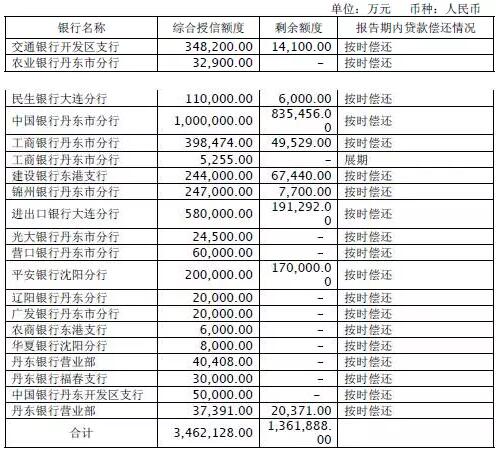 截至2017年6月底,丹东港共获得银行授信346.21亿元,尚未使用的授信额度仅为136.19亿,已经使用的授信额度达到210亿元,中国银行、平安银行、进出口银行等均在其中,其中有一笔工行的授信发生展期,涉及金额5255万元。