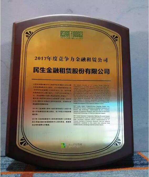 12月6日晚,第十二届21世纪亚洲金融年会暨2017亚洲银行竞争力排名研究报告发布会上,民生金融租赁股份有限公司凭借稳健的经营能力、优良的业绩及良好的市场口碑,成功蝉联“年度竞争力金融租赁公司”大奖。