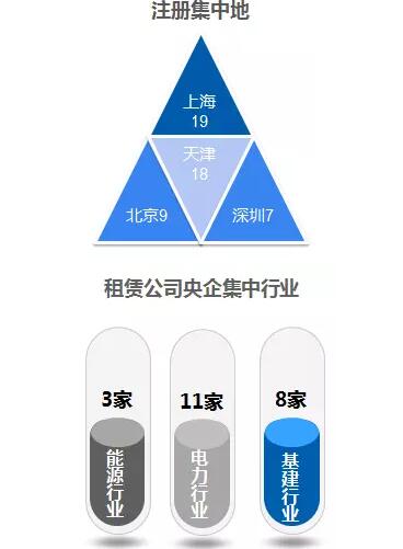 央企融资租赁的发展情况目前98家央企,共发起设立了59家融资租赁公司。这些租赁公司,绝大部分都是最近5年时间成立的,而且他们集中的领域基本上都是属于重资产的领域,如核能行业、电力、基础设施建设等等。
