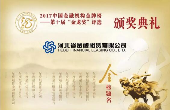 近日,《金融时报》2017年会暨中国金融机构金牌榜颁奖盛典在京举行,此次颁奖盛典中,河北省金融租赁有限公司(以下简称河北金租)荣膺最具创新力租赁公司奖项。