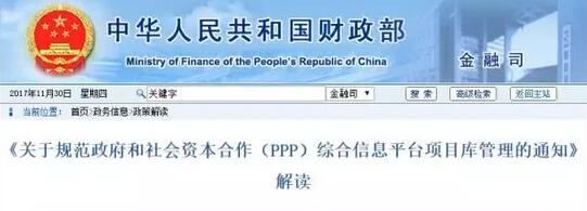 11月30日,财政部发布《关于规范政府和社会资本合作(PPP)综合信息平台项目库管理的通知》解读的通知,具体内容如下: