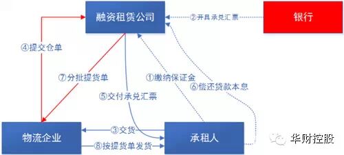 ⑥(可选择)物流企业为客户做出担保,在客户放弃提货权并无法实施厂商回购时,由物流企业负责对余下货物进行拍卖或转售,以补偿租赁公司的风险敞口。